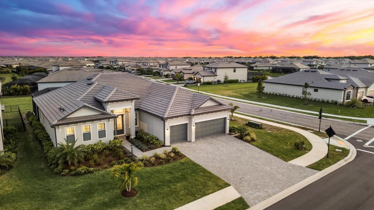 Welcome to an exceptional residence in the sought-after Lorraine Lakes community of Lakewood Ranch, where refined design meets effortless Florida living. This beautifully appointed three-bedroom, three-bath home with a private office showcases elegant upgrades and thoughtfully curated finishes throughout. A grand first impression begins with double-leaded glass front doors, opening to a light-filled interior defined by wood-inspired plank tile flooring, custom window treatments and sophisticated architectural details. The expansive great room serves as the heart of the home, featuring a custom-built entertainment wall, a cozy fireplace and tray ceilings enhanced by designer lighting, creating a warm yet elevated space ideal for everyday living and entertaining. The gourmet kitchen is equally impressive, offering a large center island, gas cooktop, quartz countertops, stainless steel appliances and abundant cabinetry. A spacious dining area flows seamlessly from the kitchen, positioned for gatherings intimate and grand. The primary suite is a serene retreat, complete with private slider access to the lanai and tranquil outdoor views. The spa-inspired primary bath features an oversized dual-sink vanity and a generously sized walk-in shower. A split-bedroom floor plan ensures privacy for guests, with each bedroom offering its bath, including one that conveniently serves as a pool bath. Go outside to your oversized custom lanai, an entertainer's dream, expansive covered living space and a large pool overlooking a lush, private yard enhanced by newly installed, upgraded landscaping. This outdoor oasis offers a backdrop for enjoying Florida's year-round sunshine and peaceful surroundings with panoramic lake views, beautiful sunrises and majestic sunsets. In Lorraine Lakes, one of Lakewood Ranch's amenity-rich gated communities, residents enjoy a resort-style lifestyle with a grand clubhouse with restaurant, fitness center, resort-style pools with poolside bar, tennis and pickleball courts, basketball, volleyball, a splash park, playground and a full calendar of social events led by an on-site lifestyle director. With beautifully maintained surroundings, scenic lakes and convenient access to Lakewood Ranch's premier shopping, dining and Gulf Coast beaches, this community offers luxury and connection in an unparalleled setting. This is more than a home, it's a lifestyle defined by comfort, elegance and the best of Lakewood Ranch living.