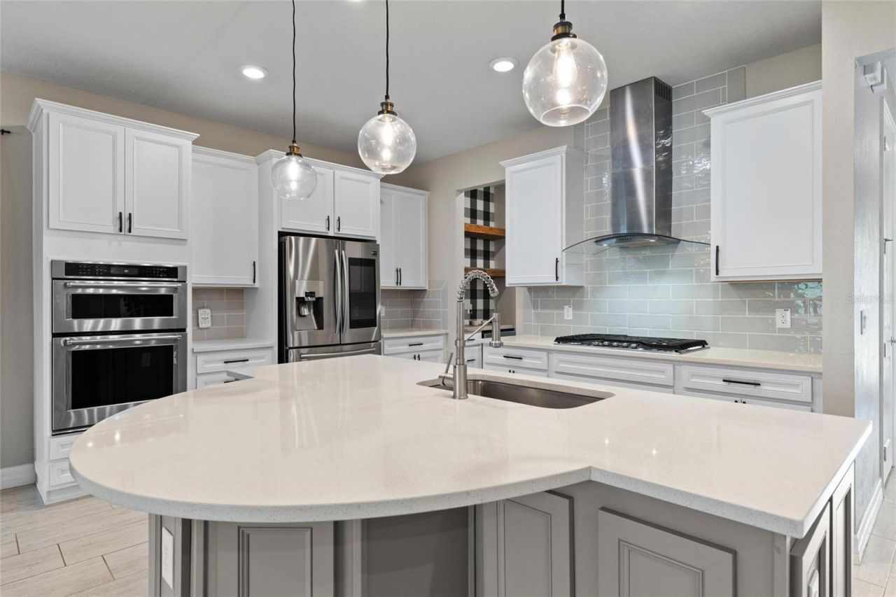 Welcome to your dream home in the highly sought, idyllic neighborhood of Starkey Ranch! This spacious two-story greets you with stone archways, a charming front porch, and a large foyer that flows into the open concept kitchen and living space that's flooded with natural light. The kitchen features quartz countertops, a luxurious island, upgraded stainless steel appliances, and stylish butler's pantry and bar area with a formal dining room just off of the kitchen itself. The spacious living room leads to a screened in back porch, complete with a relaxing hot tub and fully fenced in backyard. Enjoy private access to your driveway and two-car garage from the exclusive alley access behind the home. The first floor also features a home office, bathroom, and additional bedroom. Upstairs you'll find two more spacious bedrooms, a full-size laundry room, another full bath, a loft space, and the gorgeous primary suite with high-end finishings. This home is a storage dream, complete with no less than 14 closets! It also features energy efficient windows, a water softener system, and tankless water heater. You'll enjoy all that beautiful Starkey Ranch has to offer, from 12-miles of paved trails, to the multiple parks, community pools, dog park, and kayak launch site. Come see this stunning home today and start living your dream!