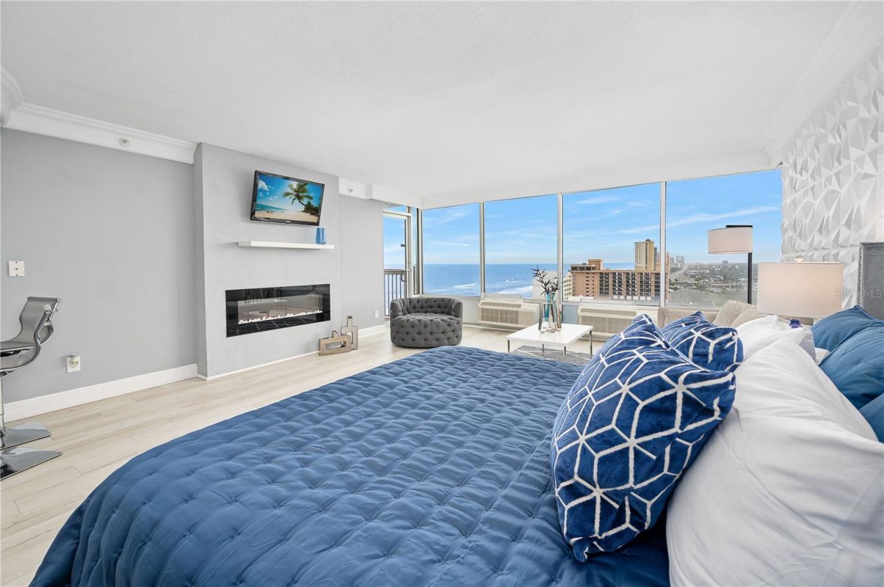 OWNER FINANCING AVAILABLE - Investor opportunity or Vacation Home - renovated 12th floor ocean/city view unit with proven annual rental income. One of the most updated units in Daytona Beach Resort, featuring modern flooring, upgraded kitchen, updated countertops, and aN electric fireplace feature. Stunning wall of glass windows provides ocean views east and city views west plus a private ocean-view balcony. Sold fully furnished and turnkey rental ready. Strong income history. Most resort amenities now open, increasing rental appeal. Rare chance to purchase a high-floor renovated