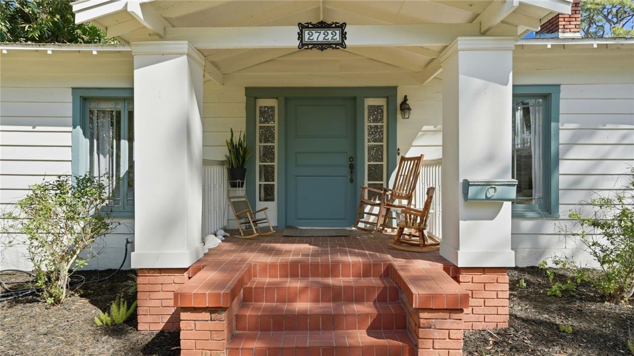 Welcome to this adorable 1930's River District cottage just dripping in vintage charm! This one is truly special, from the rocking chair front porch with brick steps and original door hardware, to the original wood flooring in the craftsman living areas. The working brick fireplace provides warmth and a cozy vibe, while the built ins offer storage and architectural interest. Natural light floods into the living spaces through the original casement deep-set windows. The dining area is just off the kitchen and features large windows with built-in storage and easy access to the kitchen. There are two spacious bedrooms with original hardwood floors and a beautiful bath with checkerboard tile and an original claw-foot tub! The kitchen is open and bright, with plentiful storage! There is a bonus bath just off the kitchen with a stand-up tiled shower for convenience for guests or family. For additional convenience there is an interior laundry room just off the kitchen, leading out to the lush backyard that is spacious and open, with a vinyl fence that opens wide for cars, boats, or other toys. The location is highly desirable, so close to downtown and the Manatee River, and just a short ride out to the beaches on Anna Maria Island and the best part is it isn't in an HOA. Schedule your showing today!