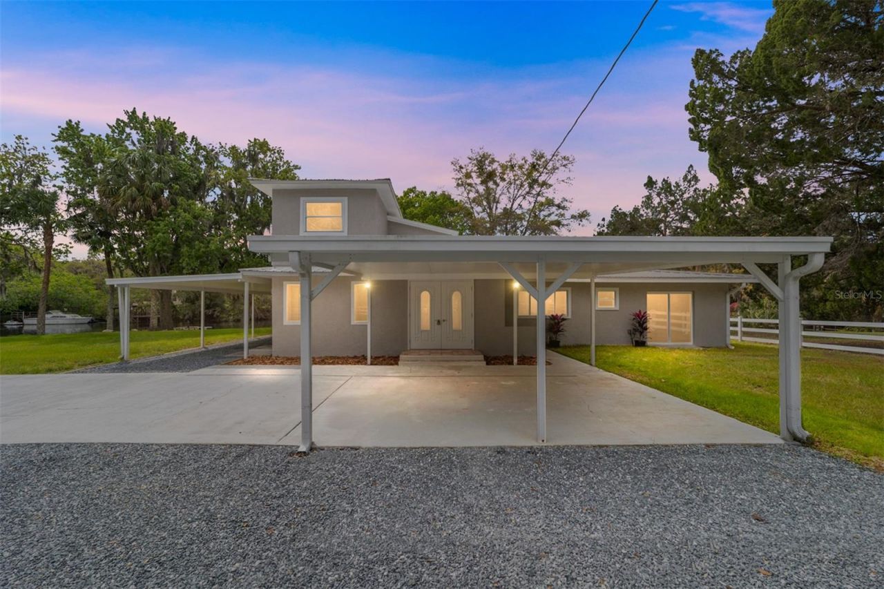 Spectacular tip-lot riverfront property with over 200 feet of frontage on one of Levy County's deepest draft freshwater rivers. Fully renovated, this three-bedroom, two-bath residence was taken down to the studs and rebuilt in 2025 with new windows, flooring, kitchen and baths, offering modern comfort and efficiency. Positioned on approximately 0.66 acre across two parcels, the property provides direct access to open water with no bridge restrictions, supporting a range of boating capabilities. The freshwater river setting is spring-fed, contributing to clear water. The 2,030-square-foot interior is designed to maximize natural light and expansive water views, with multiple rooms oriented toward the river. A loft or flex space adds versatility, while the Florida room opens to an outdoor deck overlooking the water. An 80-foot dock, constructed with rock-drilled pilings, offers substantial waterfront access and functionality. The freshwater environment supports clean pilings and reduced barnacle accumulation, an important consideration for vessel maintenance. The surrounding area is home to manatees, otters and native wildlife, with strong fishing opportunities. Additional exterior features include a full seawall, fenced yard with dual access points, outdoor shower, mature trees, fire pit area and gazebo. A detached two-car garage, additional covered parking and two storage buildings provide ample space for vehicles and equipment. This is a rare opportunity to secure a fully renovated tip-lot riverfront property offering expansive waterfront frontage, direct boating access and a natural setting with abundant wildlife, across two parcels on one of the region's notable freshwater waterways.