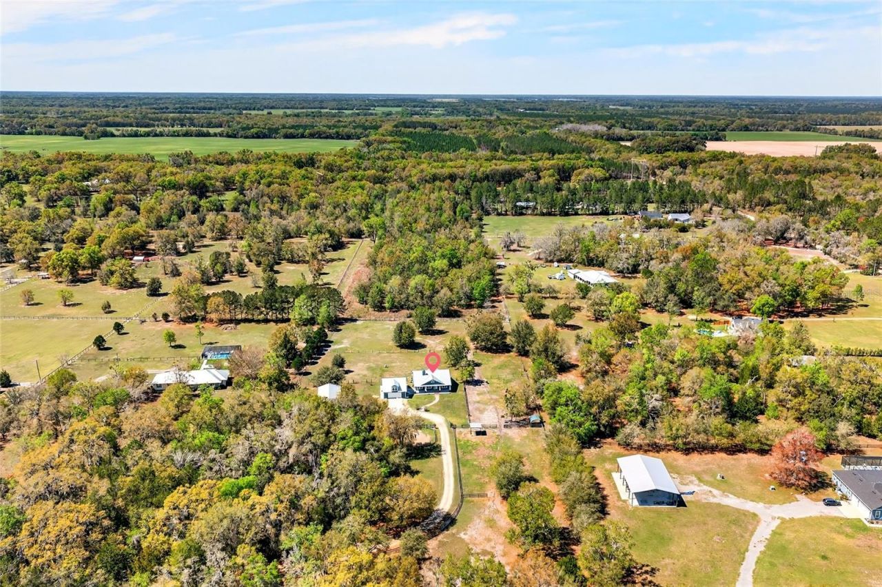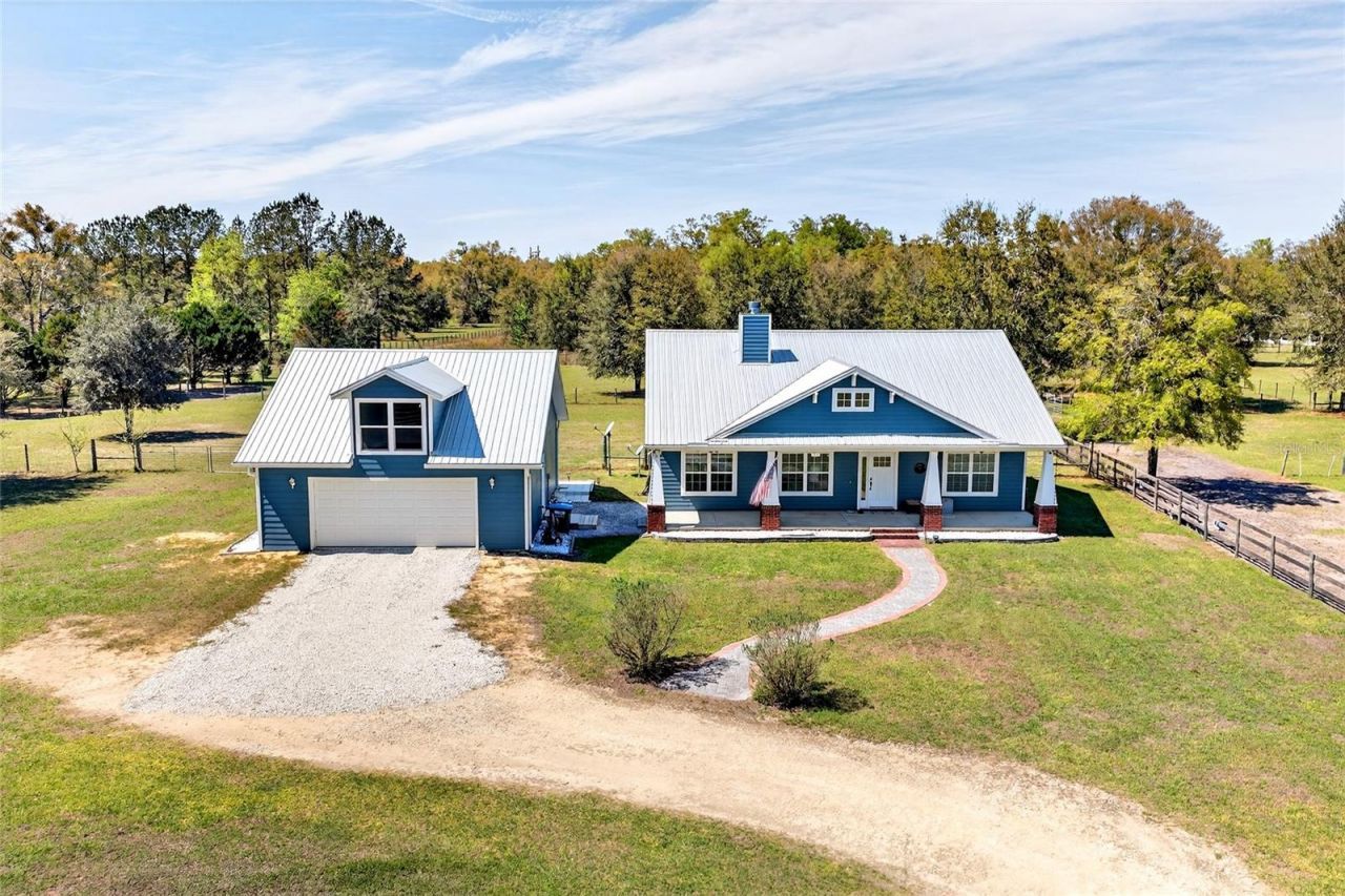 Welcome to peaceful country living in the heart of Newberry, Florida. Situated on 5.09 fully fenced acres, this beautiful farm offers the perfect balance of comfort, functionality, and open space. Ideal for horse owners or those seeking a private country setting without sacrificing convenience, the property also includes a detached 1-bedroom, 1-bathroom in-law suite with an attached climate-controlled 2-car garage-perfect for guests, extended family, or potential income.The 3-bedroom, 2-bathroom main home features 1,584 square feet with a thoughtfully designed split floor plan that provides both privacy and an open, fluid living space. The spacious primary suite offers a large bedroom, generous closet with attic access, and an ensuite bathroom complete with a walk-in shower and relaxing soaking tub.The main living area is warm and inviting with a wood-burning fireplace, creating the perfect place to unwind after a day outside. The beautifully appointed kitchen includes all appliances, with the refrigerator being only two years old. The washer and dryer are included for added convenience. Two additional bedrooms are located on the opposite side of the home, making the layout ideal for family or guests.Step outside to the screened-in back porch, where you can enjoy Florida evenings protected from the elements, or gather around the fire pit while taking in stunning west-facing sunset views across your property.Designed with equestrians in mind, the farm features a 3-stall barn with wash rack, along with a lockable tack room and feed room. The property includes four main pastures, two run-in shelters, and ample space to add an arena or additional paddocks, offering flexibility for a variety of horse operations.A beautiful in-law suite built just over a year ago provides additional living space and income potential. The 312 sq ft guest residence includes 1 bedroom and 1 bathroom with beautiful finishes throughout and an attached climate-controlled 2-car garage. All construction was fully permitted and completed to code.The property has been meticulously maintained, including fresh exterior paint completed in 2025 and 'forever screws installed in the roof in 2025 for long-term durability. Both homes are bonded for termite and pest protection, offering additional peace of mind.Despite its peaceful country setting, the property offers exceptional convenience. Located less than 5 miles from Publix, Bravo Supermarkets, multiple restaurants, Ace Hardware, coffee shops, boutiques, and a fitness center, you can enjoy the charm and quiet of small-town living without sacrificing everyday amenities. Additionally, there are plans for a Wawa and shopping center coming later this year, just minutes away on SR 26. The farm is also ideally positioned less than 40 minutes from Gainesville and approximately one hour from Ocala, making it easy to access larger city conveniences while still enjoying the privacy and tranquility of your own acreage.With peace, privacy, and breathtaking views overlooking your horses, this property captures the true essence of North Florida farm living while offering the convenience of nearby town amenities.