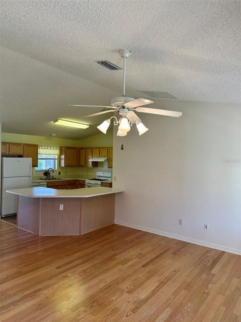 Must see this 2 bedroom, 2 full bath & 1.5 car garage located in the Village of Springdale. This popular ranch style, Austin model is situated on an oversized corner homesite, brick paver driveway & sidewalk. Newer architectural shingle roof & gutters (2022). Newer washer/dryer. Interior of home, resent interior paint, volume ceilings, recessed lights, hardwood flooring throughout living room/dining room & open floor plan concept. Newer gas range & refrigerator. Large master bedroom w/ walk-in closet & master en suite. Oversize lanai w/ outdoor carpet is perfect for enjoying Florida's wonderful weather. This home is conveniently located near the Publix shopping center, VA clinic, adult pool, Nancy Lopez Country Club & restaurant, First Responders Rec Center & coming soon the Walmart Neighborhood Market off CR 42. All golf car accessible. Bond paid! Call today for your personal tour of this lovely home.